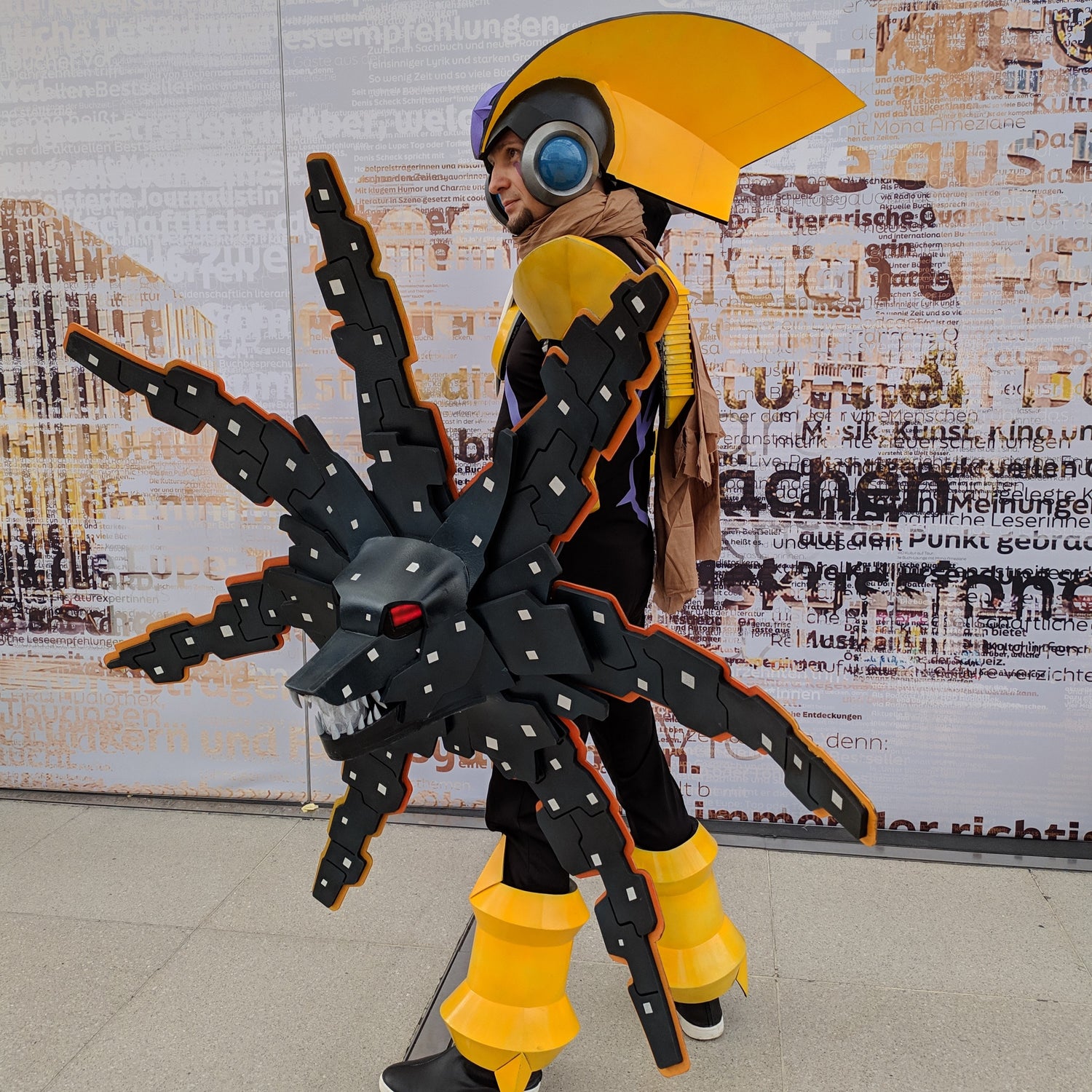 Printed fabrics, laser cut wings, eva foam armor, and fabric wrapping